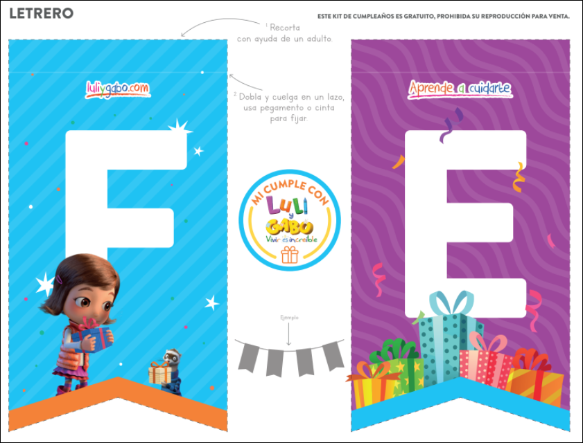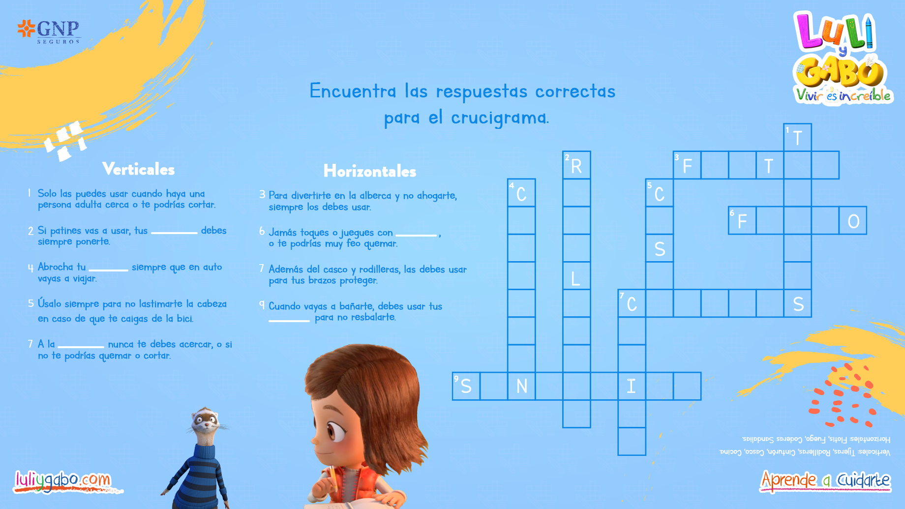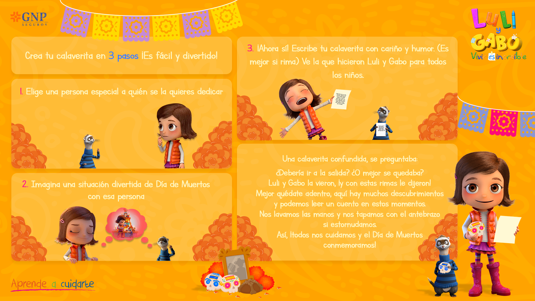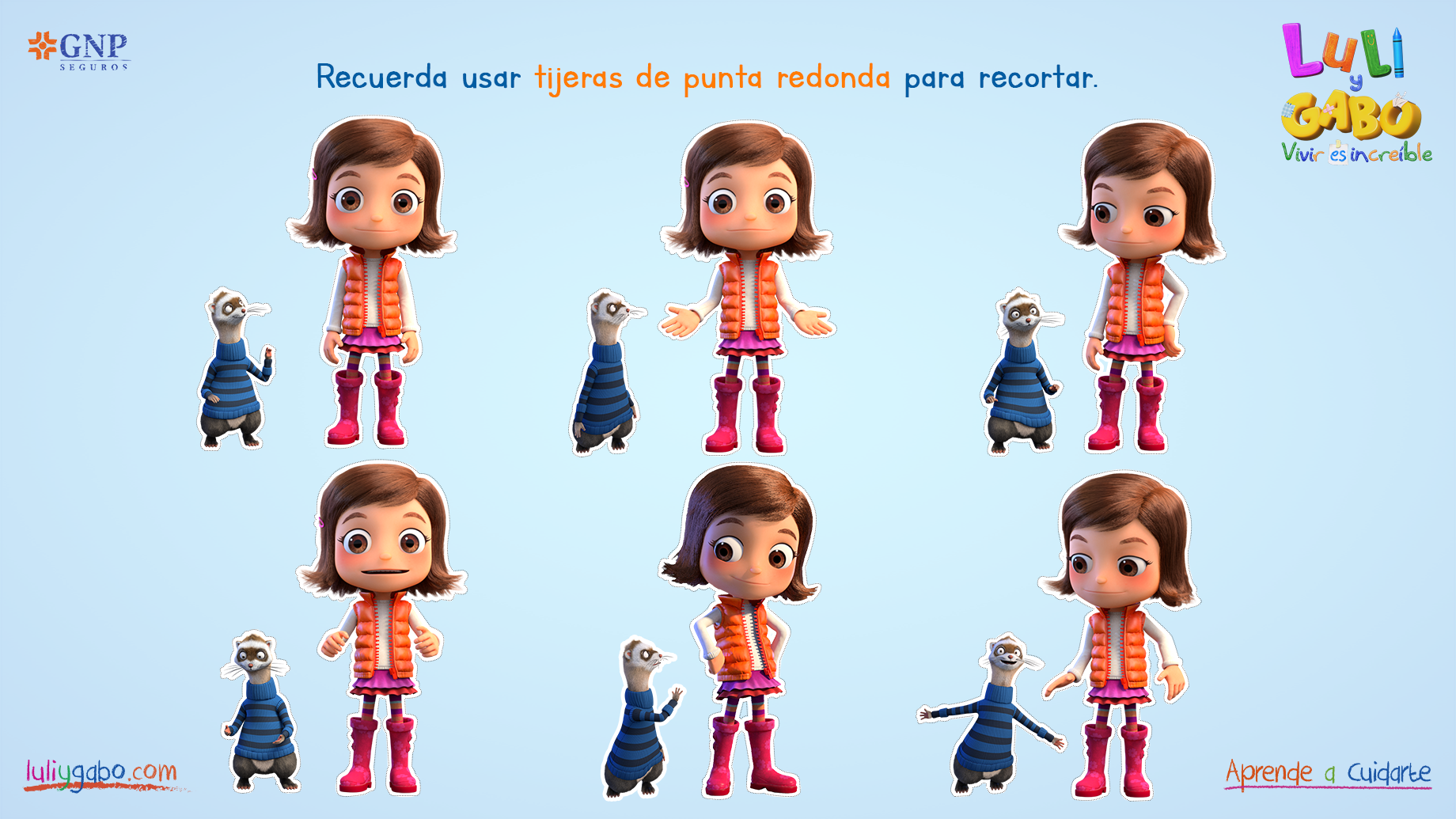 Luli y Gabo estampas con más consejos de prevención para que sigan aprendiendo y a cuidarse mientras se divierten.